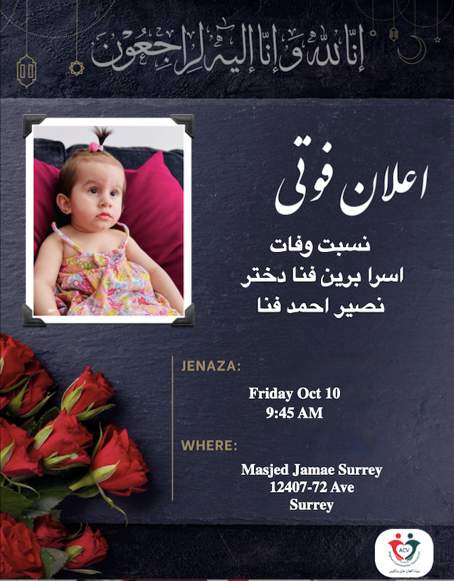 کمیونیتی افغانهای ونکوور مراتب تسلیت و همدردی عمیق خود را به خانوادههای محترم دلشاد، فیض و سروری ابراز نموده و از درگاه خداوند متعال برای مرحوم جنت فردوس طلب مینماید