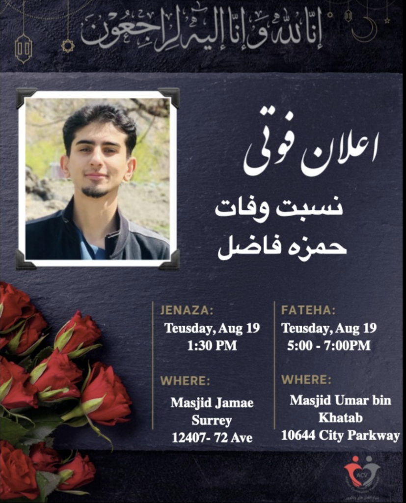 با نهایت تأثر و اندوه، کمیونیتی افغانهایی ونکوور یک بار دیگر جوانی را از میان خود از دست داد. حمزه فاضل، جوان ناکام، به رحمت