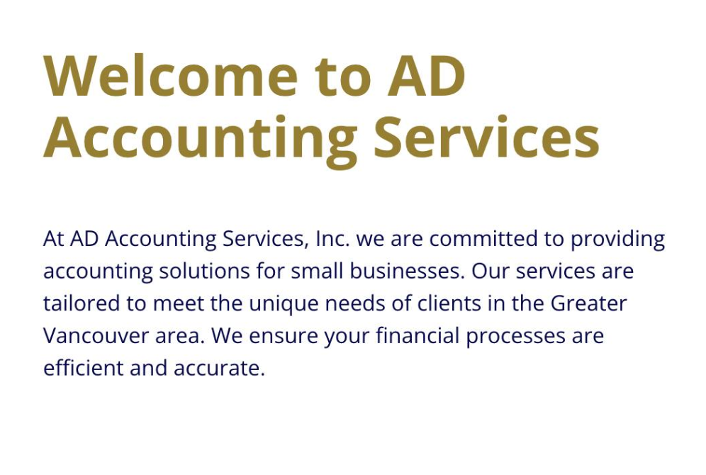 شرکت AD Accounting Services, Inc. متعهد به ارائه راه حلهای حسابداری برای شرکتهای کوچک است. خدمات ما به گونهای طراحی شدهاند که نیازهای خاص مشتریان