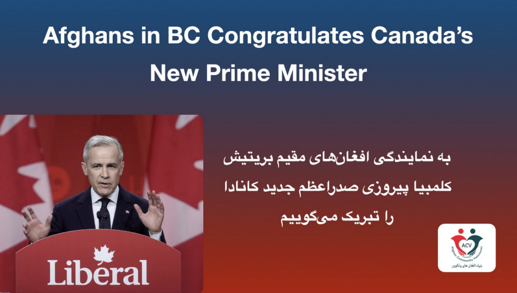 The Afghan Community of Vancouver Foundation (ACVF), on behalf of Afghans across British Columbia, extends its congratulations to Mark Carney on his victory and appointment