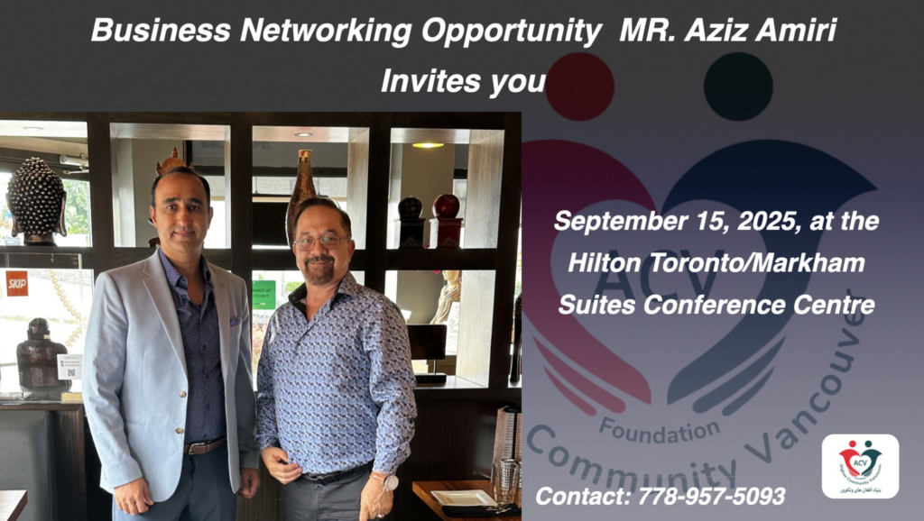 Afghan Community (ACVF) President Wadood Dilsoz recently met with Mr. Aziz Amiri, a successful businessman and the President of the Canada-Afghanistan Business Council. Mr. Amiri