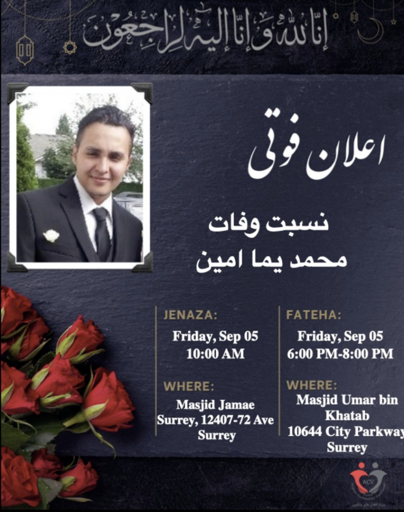 پیام کمیونیتی افغانهایی ونکووراعلان فوتی لیلا امین مادر.حسیب امین پسر.امید امین برادر.شیبا امین خواهر.اجمل مخلص شوهر همشیره.مریم مخلص و سلیمان مخلص خواهر زاده هامحمد انور