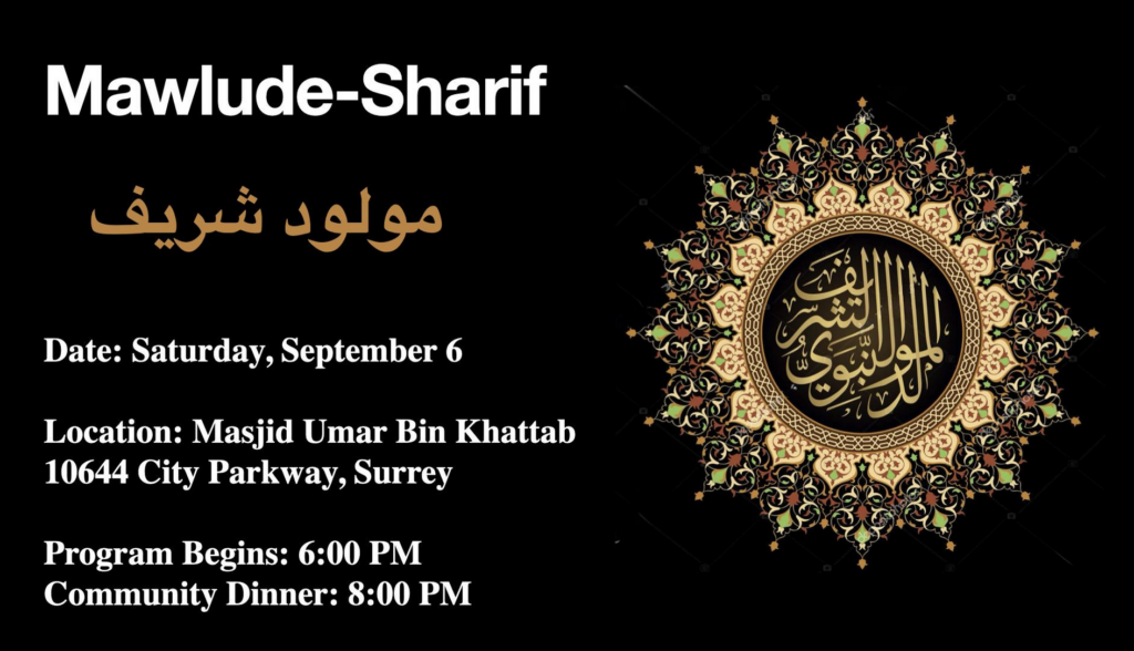 Umar bin Khattab Masjed warmly invites you to join us in honouring the blessed birth of our beloved Prophet Muhammad (peace and blessings be upon